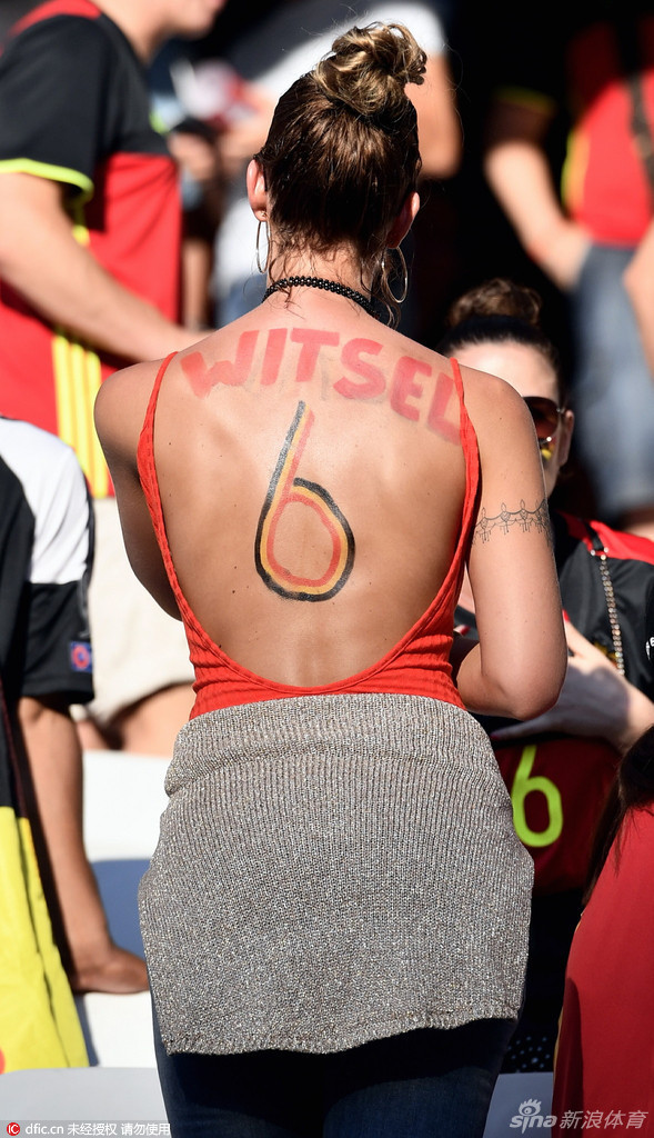 北京时间6月23日,欧洲杯小组赛瑞典不敌比利时,维特塞尔娇妻看台管涵性感露背。